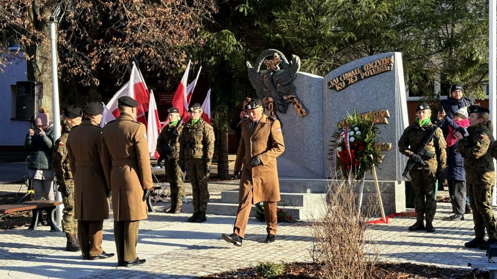 Przed Zespołem Szkół Technicznych Centrum Kształcenia Zawodowego i Ustawicznego w Lesznie odbyła się uroczystość odsłonięcia pomnika poświęconego żołnierzom 55. Poznańskiego ...
