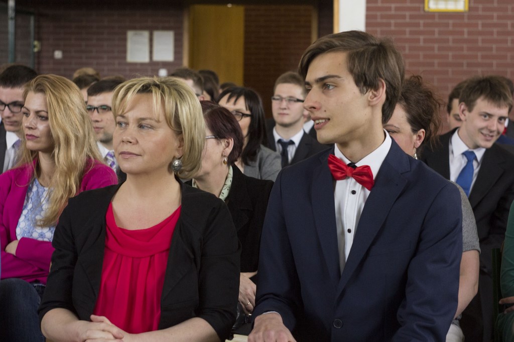 W piątek 24 kwietnia 2015 roku odbyło się w naszej szkole uroczyste wręczenie świadectw maturalnych. Motywem przewodnim imprezy było „Tango” Sławomira Mrożka, w rytm którego żegnaliśmy tegorocznych absolwentów. Wspólnie stawialiśmy ważne pytania: Czym kierować się w życiu? Co wybrać? Jak odnaleźć się we współczesnym świecie? Uczniowie podziękowali dyrekcji, nauczycielom i pracownikom szkoły za wspólnie spędzone chwile. Zostały wręczone świadectwa z wyróżnieniem, nagrody zdobyte w konkursach matematycznych, informatycznych i językowych. Wśród aplauzów żegnaliśmy też sportowców, którzy przez cztery lata reprezentowali naszą szkołę w różnych zawodach na szczeblu powiatowym i wojewódzkim.