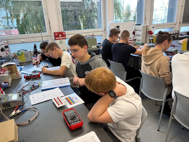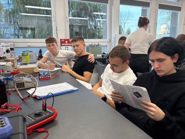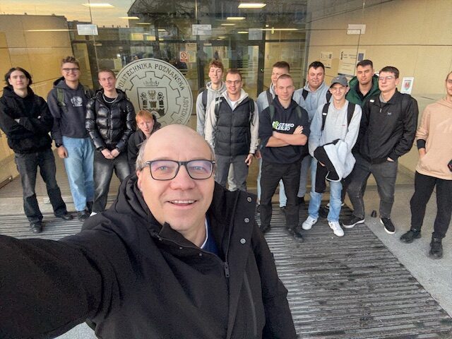 W tamtym miesiącu klasa 5TEO razem z opiekunem Sławomirem Wolskim pojechała do Poznania by na Politechnice Poznańskiej wziąć udział w warsztatach z programu „Czas zawodowców” o tematyce związanej z magazynami energii. Uczniowie mogli zapoznać się z zagadnieniami dotyczącymi obsługi akumulatorów oraz praktycznym wykorzystaniem technologii wodorowej. Oprócz teorii mogli także samodzielnie odkryć działanie sprzętów i poeksperymentować z nimi. Nauce towarzyszyła wesoła atmosfera i wiele zabawy. Wszyscy wrócili zadowoleni z uśmiechami na twarzy. Uzyskana przez nich wiedza z pewnością pomoże im w kreowaniu własnej kariery zawodowej.