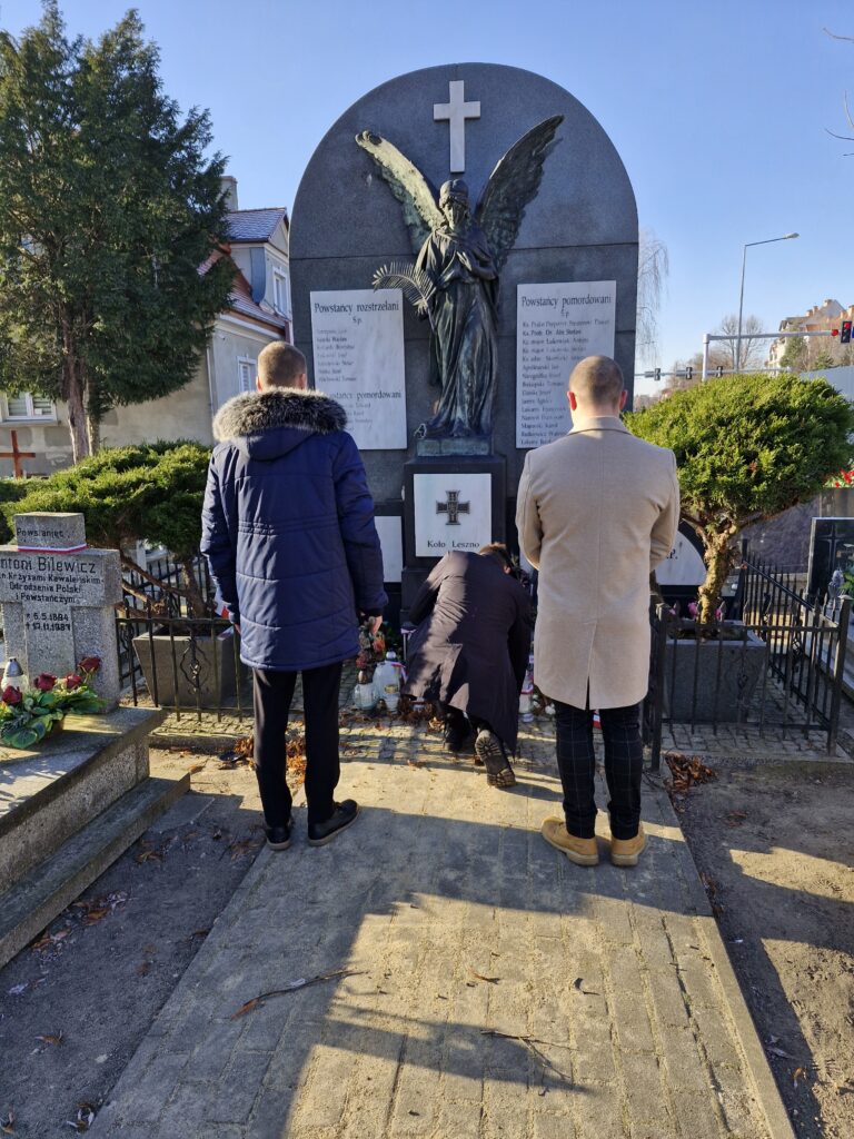 Podczas gdy przed Zespołem Szkół Technicznych-CKZiU w Lesznie trwała uroczystość odsłonięcia pomnika 55 Poznańskiego Pułku Piechoty, delegacja uczniów szkoły udała się w teren, by oddać hołd bohaterom związanym z historią miasta i regionu. Wizyta była okazją do bezpośredniego kontaktu z miejscami, które przypominają o wydarzeniach Powstania Wielkopolskiego oraz tradycjach wojskowych Leszna.