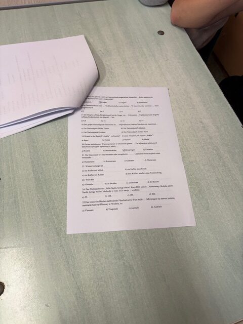 Szkolny etap konkursu odbył się 6 marca 2026 roku. W pierwszej części rywalizacji udział wzięło pięć zespołów uczniowskich. Zadaniem uczestników było rozwiązanie testu sprawdzającego wiedzę na temat Austrii.