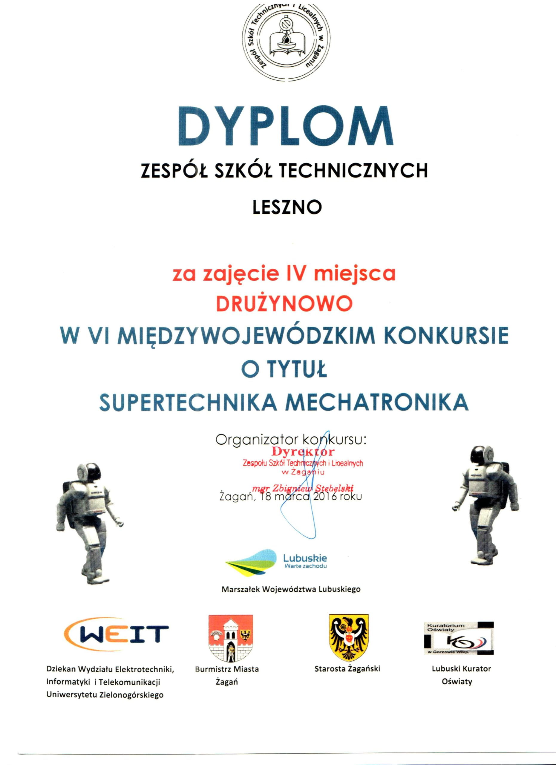 Zwycięzcami wewnątrzszkolnego konkursu o tytuł „SUPERTECHNIKA MECHATRONIKA”, zostali: 1.Marcin Heliński z klasy 4TM, 2.Krzysztof Łukaszyk z klasy 3TM. 3.Maciej Skrzypczak z klasy 2TLM Jednocześnie 2